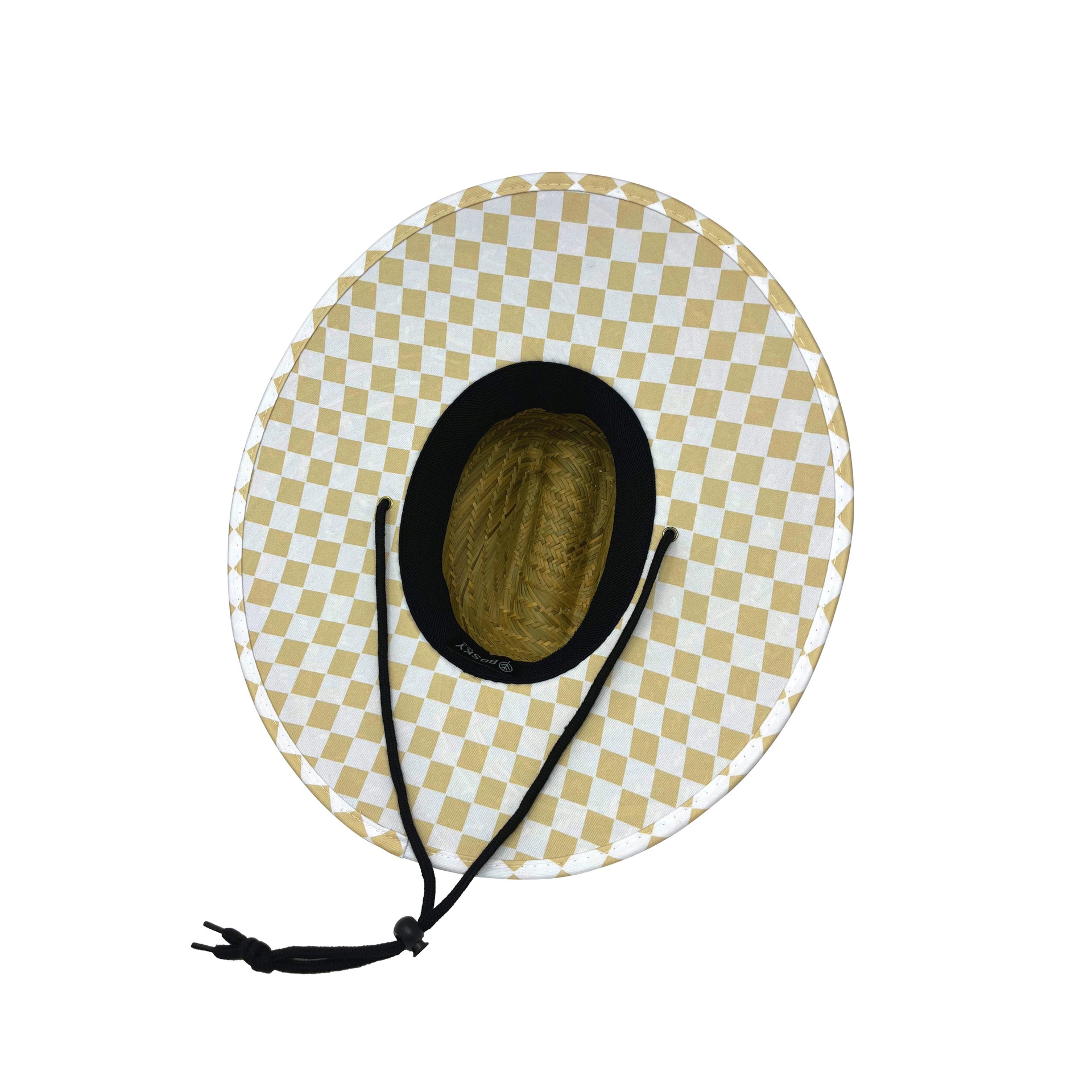 Embrace classic So-Cal style with our white and tan checkered straw hat. An ultra-cool look for your next beach day.